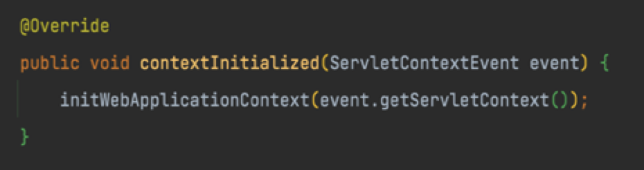 ContextLoaderListener μ ν΄λμ€ λ΄λΆμ contextInitialized() λΌλ λ©μλκ° μλλ° ServletContextEvent λ₯Ό μΈμλ‘ λ°μ μμ±ν©λλ€.