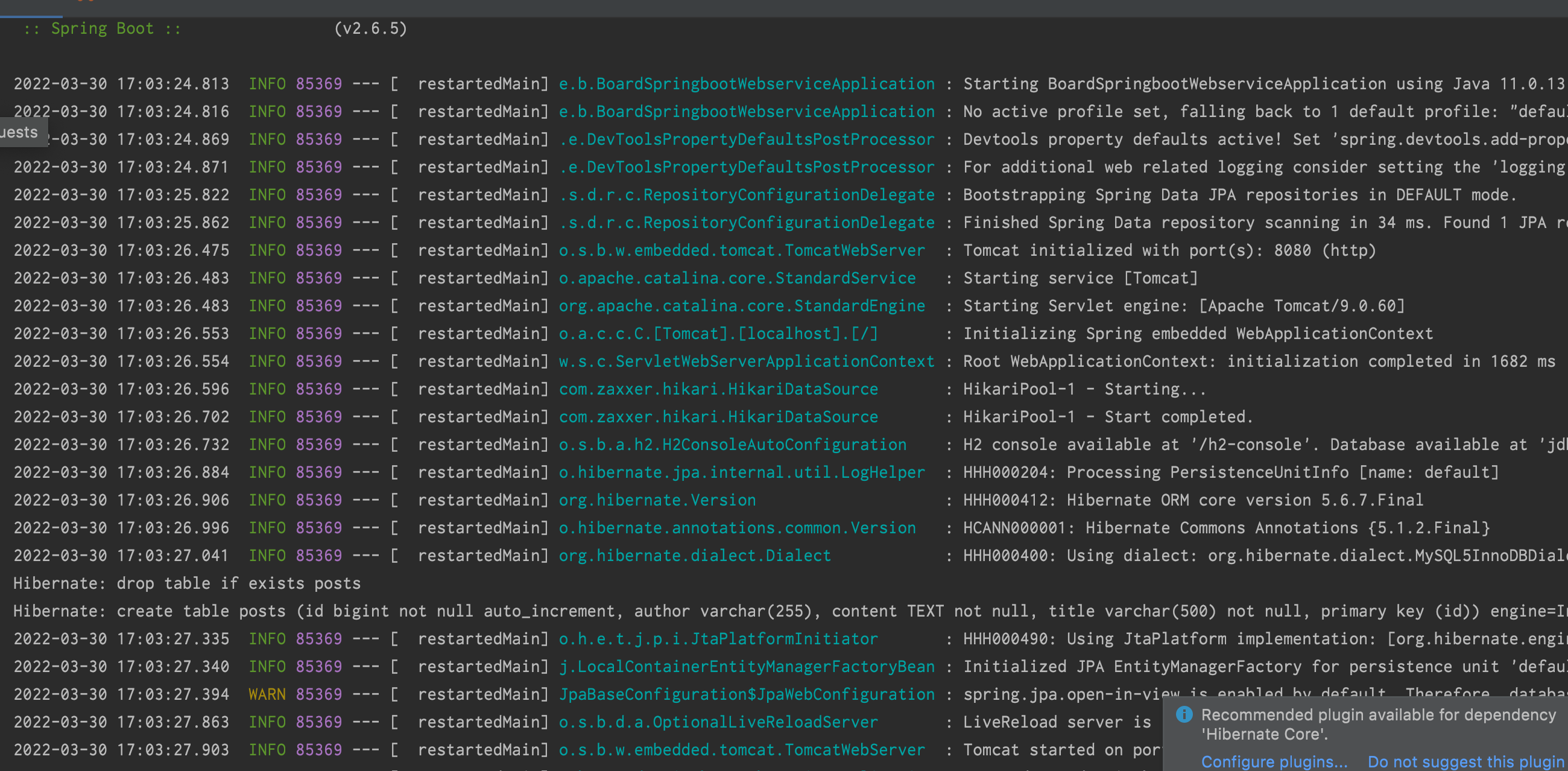 • [x] spring.jpa.hibernate.ddl-auto=create 또는 update 구문 추가