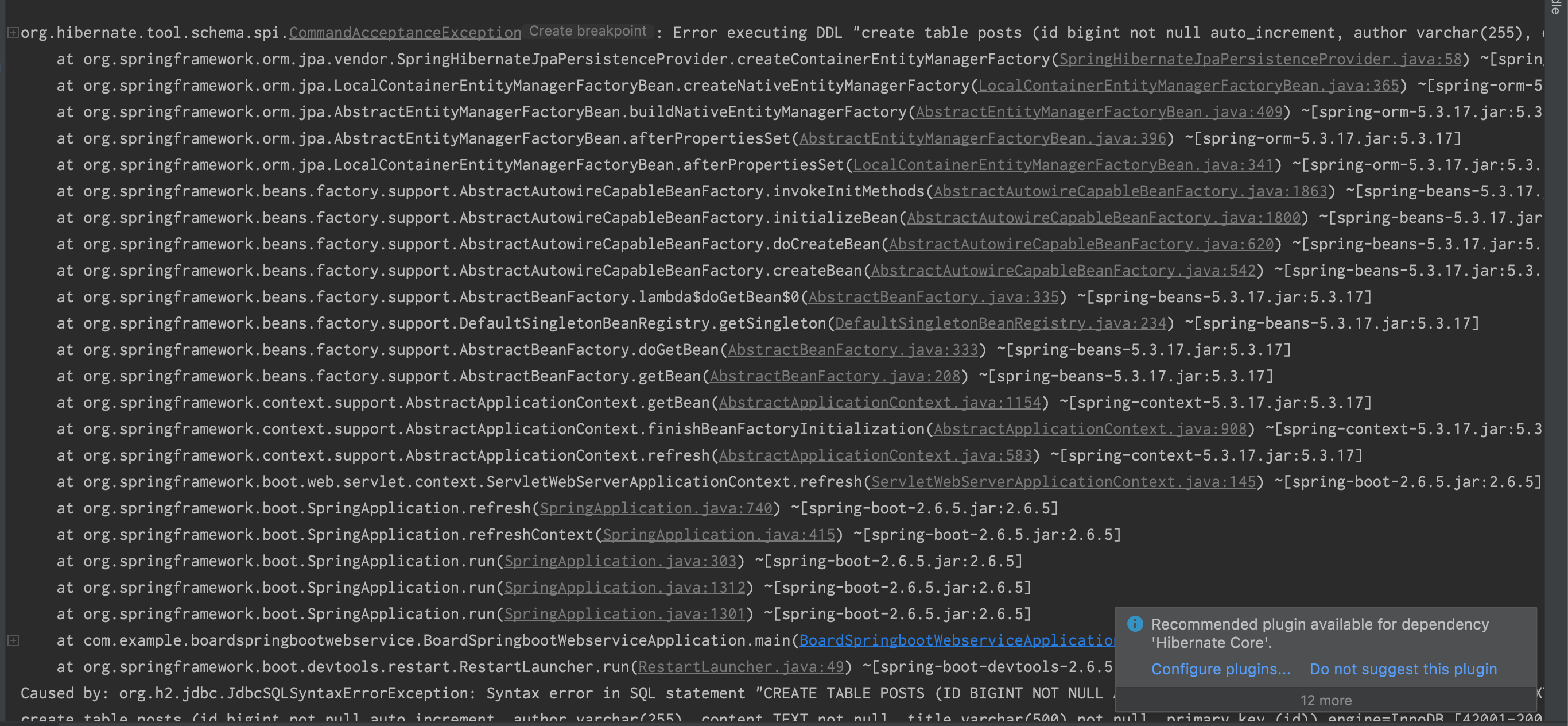 implementation 'com.h2database:h2:1.4.199' 버전 수정하여 해결