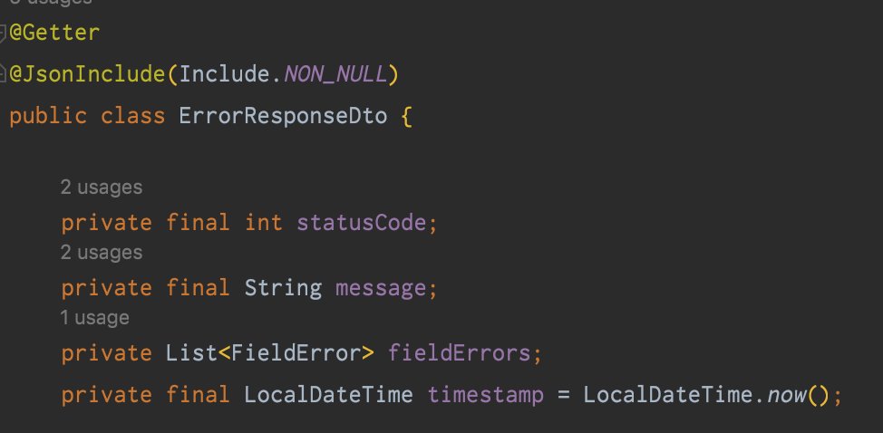 - Error Response는 객체를 만들어 통일하게 사용한다.