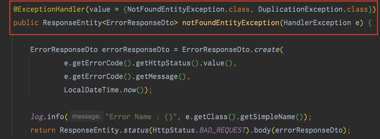 - @ControlAdivce를 통해 모든 예외를 한곳에서 핸들링 한다. (전역)