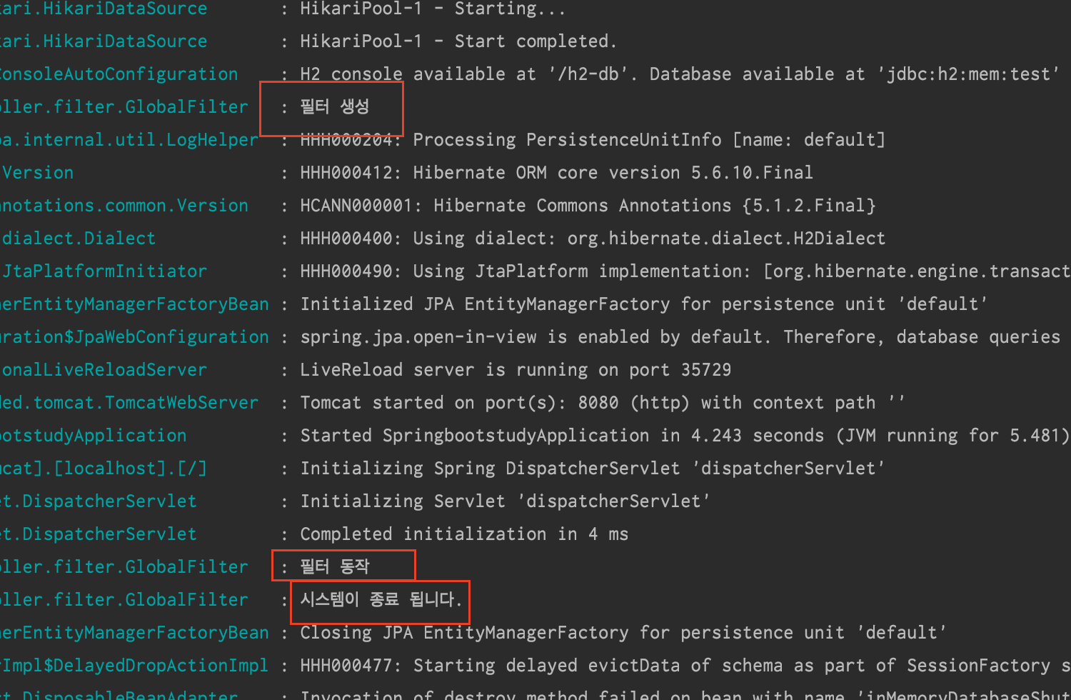 아직 security를 공부하지 않아 인증과 인가 관련해서 지식이 부족하다. 그러므로 filter의 사용 예시는 잘 모르겠다. security 를 배울 때 Filter를 적용하여 포스팅을 다시 해보겠다.