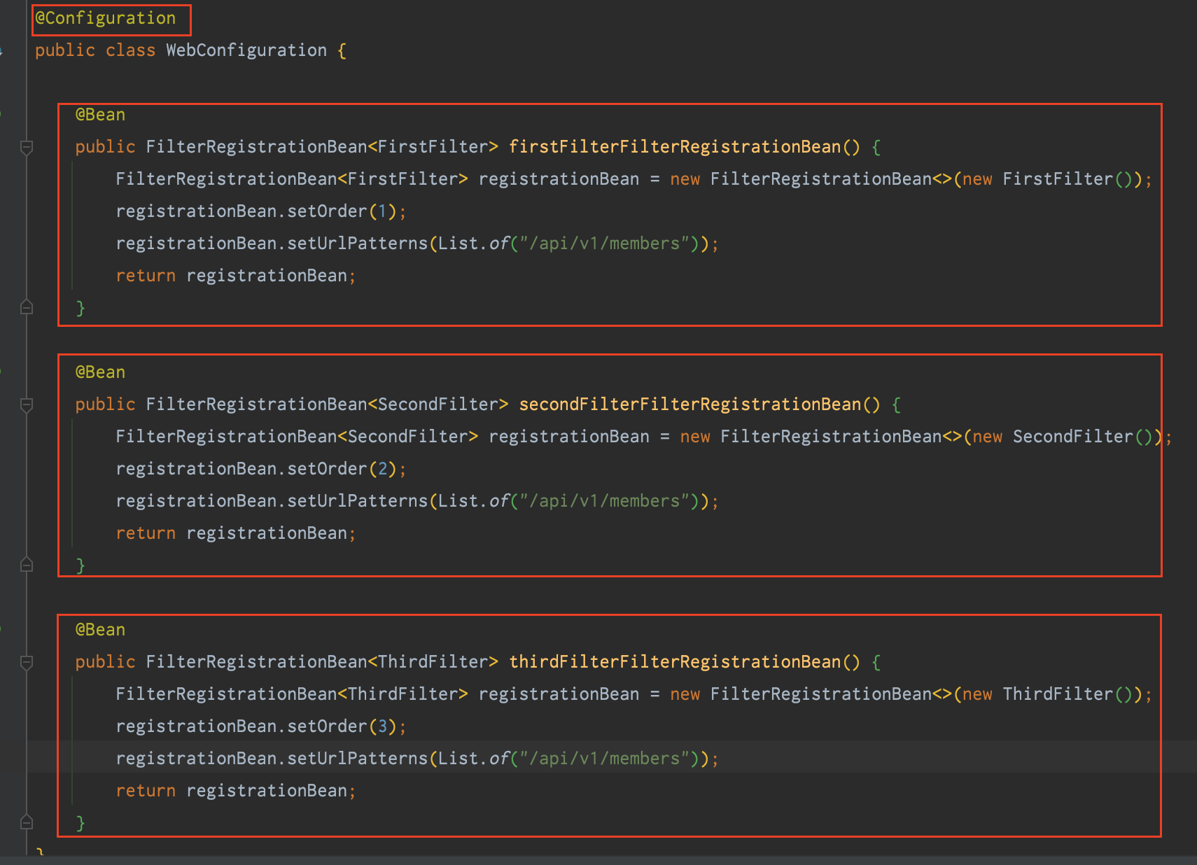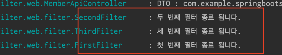 여러개의 Filter 를 등록 할 경우 bean으로 등록하여 사용 할 수 있고 setOrder() 으로 순서를 정할 수 있다. 매개변수 타입은 int 다.