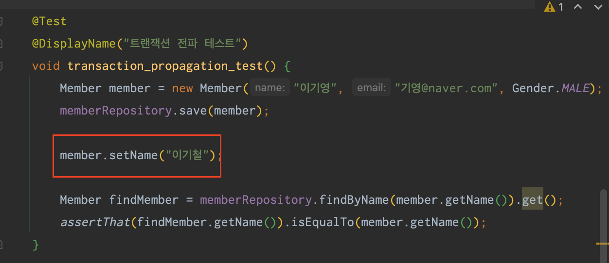 member 정보를 수정하고 테스트하는 코드이다. 과연 이 테스트는 성공 할 것인가?
