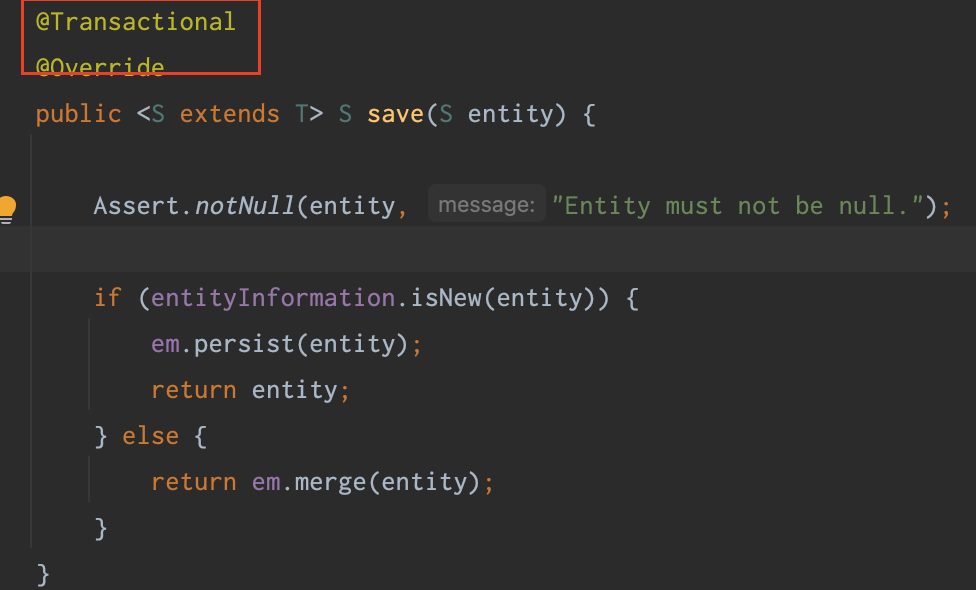 JPA 를 사용하여 @Transactional 에노테이션을 메소드에 설정하면 트랜잭션이 시작하는 시점과 commit 되는 시점이 메소드의 처음과 끝이라는 것을 알 것이다. 우리가 Repository에 save 하는 과정에서도 트랜잭션 처리가 되어 있다. 만약 이 save() 를 한 줄, 한 줄 호출을 한다면 별도의 트랜잭션을 사용하여 동작이 되는 것이겠죠.