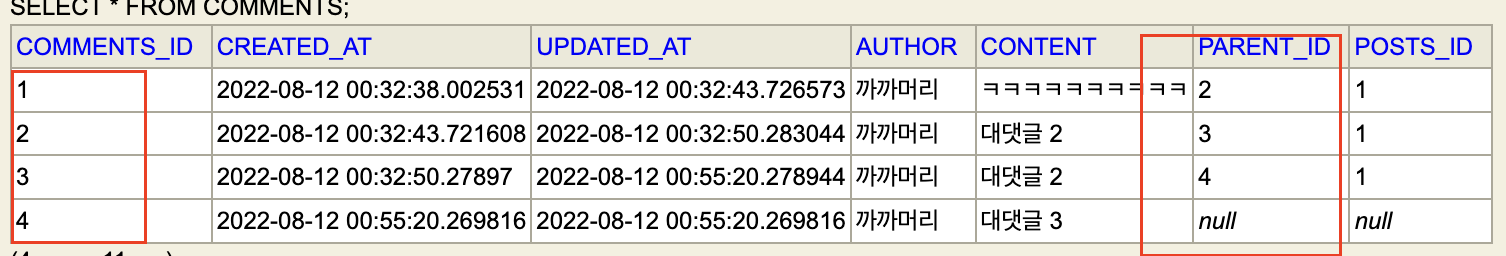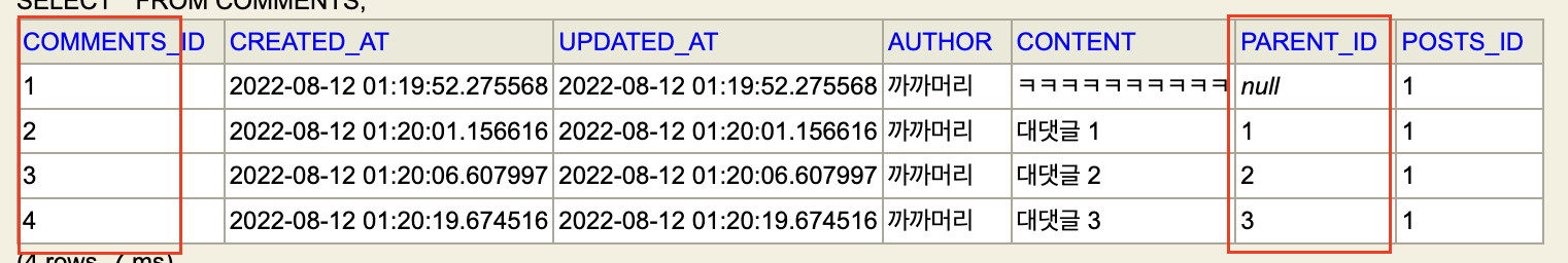 parent_id가 거꾸로 저장이 되있는 걸 확인할 수 있다.