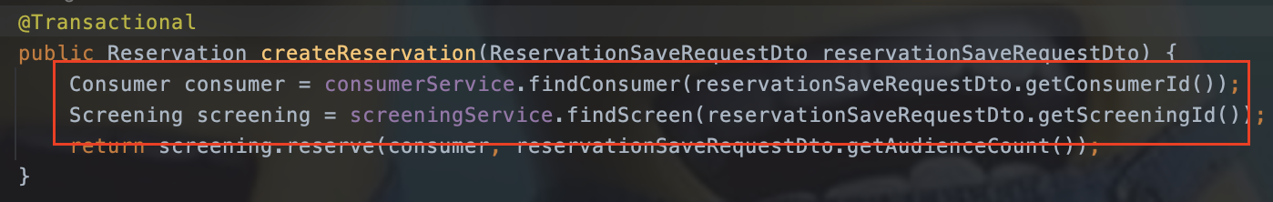 - Screening 애그리거트와 Consumer 애그리거트는 서로 다르므로 서비스 계층에서 각각 조회 처리를 하였다.