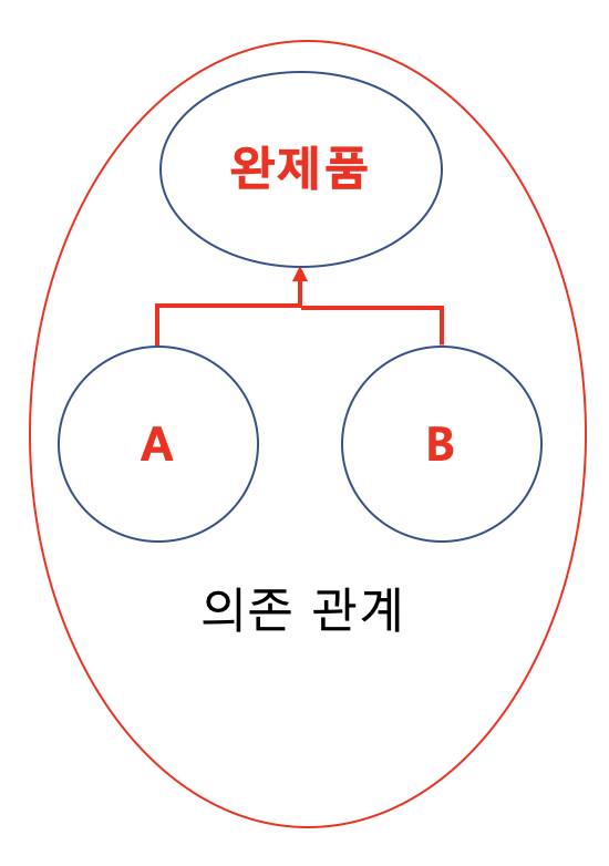 이로서 완제품은 A 부품과 B 부품의 의존성을 가지게 된다는 것인데 이것이 바로 결합도라고 생각합니다.